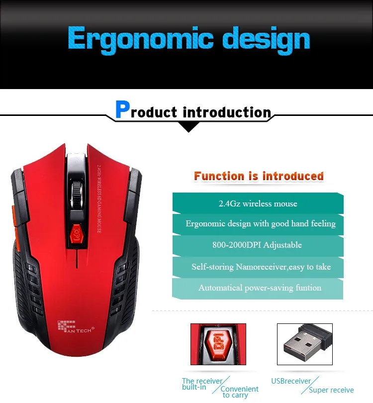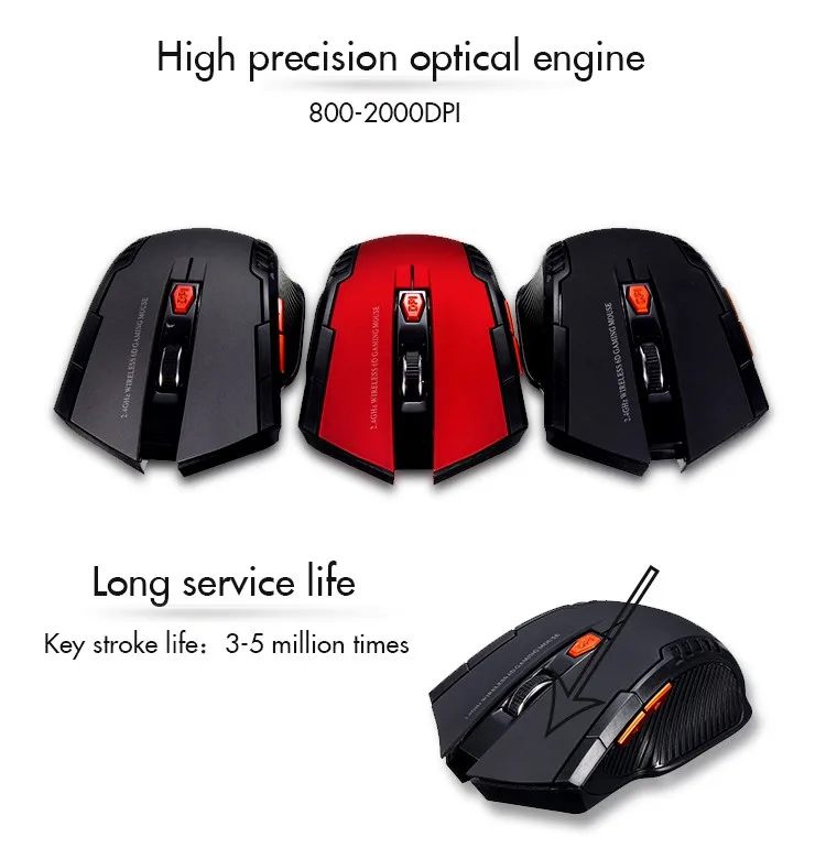 Compact Wireless Gaming Mouse 2000DPI Optical Sensor