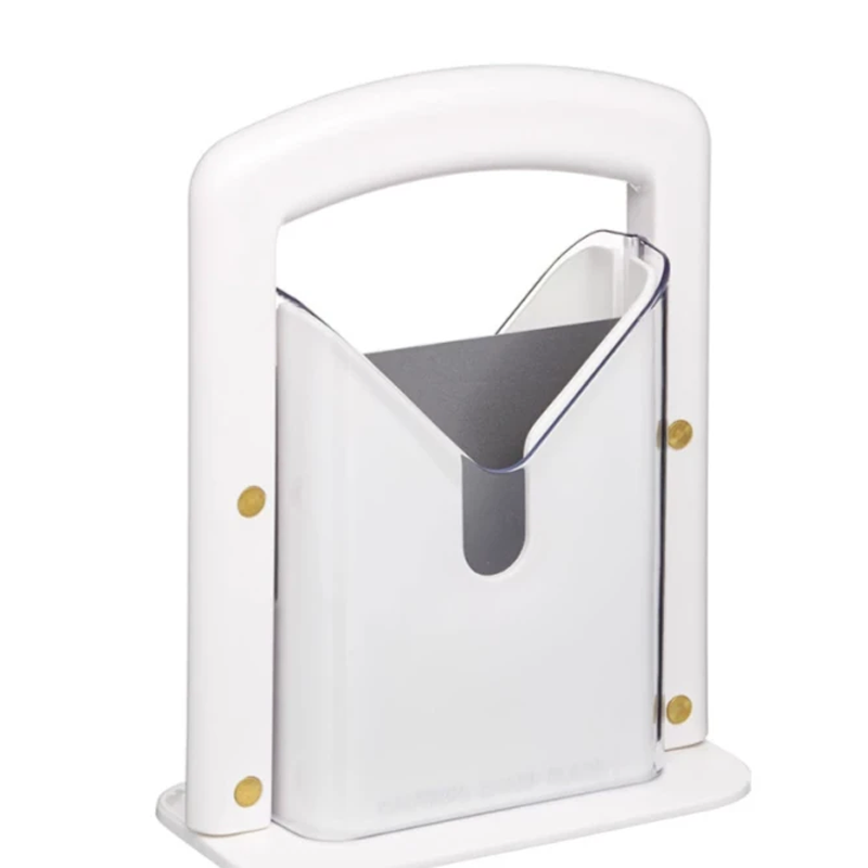 Our cutter features a stable grip and serrated blades with a safety cover, protecting your fingers from cuts. The holder securely grasps the bagel, and two transparent acrylic shields keep your fingers safe.